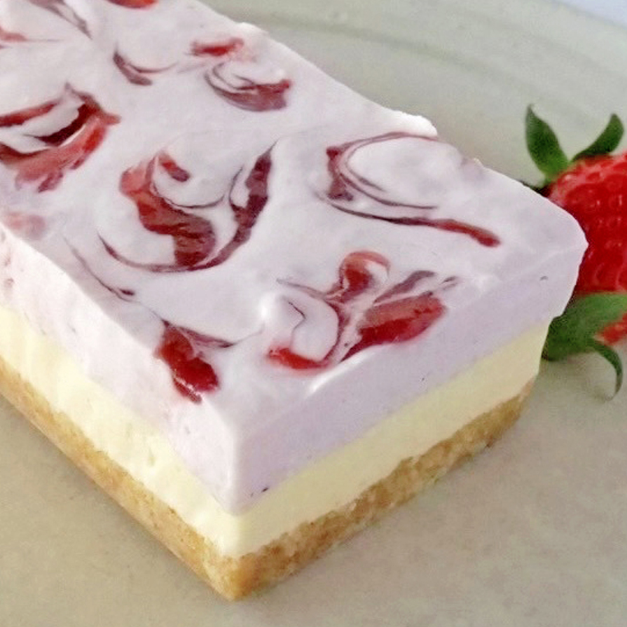 サクサクな玄米クッキー生地に二層のムースを重ねて、濃厚なのに後味スッキリ、甘さ控えめな大人の苺のチーズけーきです。
